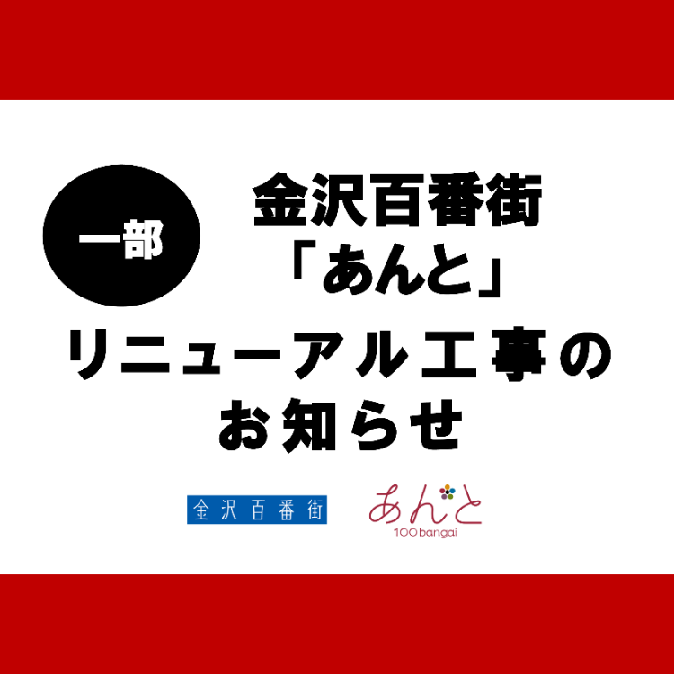 「あんと」一部区画リニューアル工事に伴うお知らせ