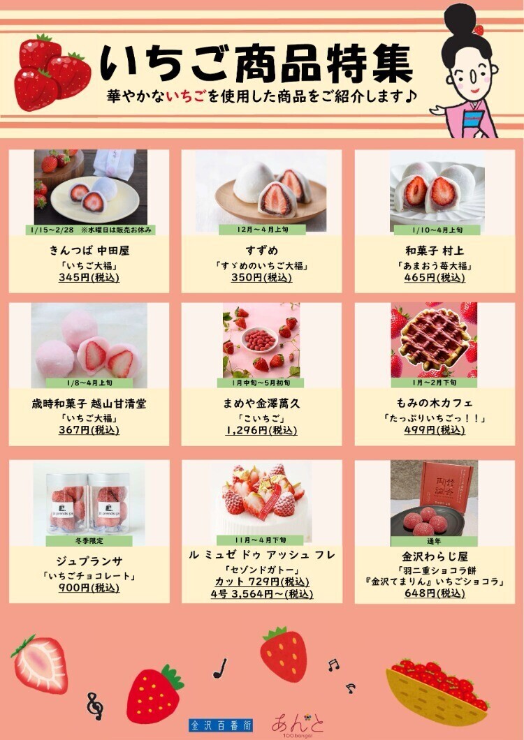 只今、あんと各店ではいちごを使用した華やかな商品をご用意いたしております🍓