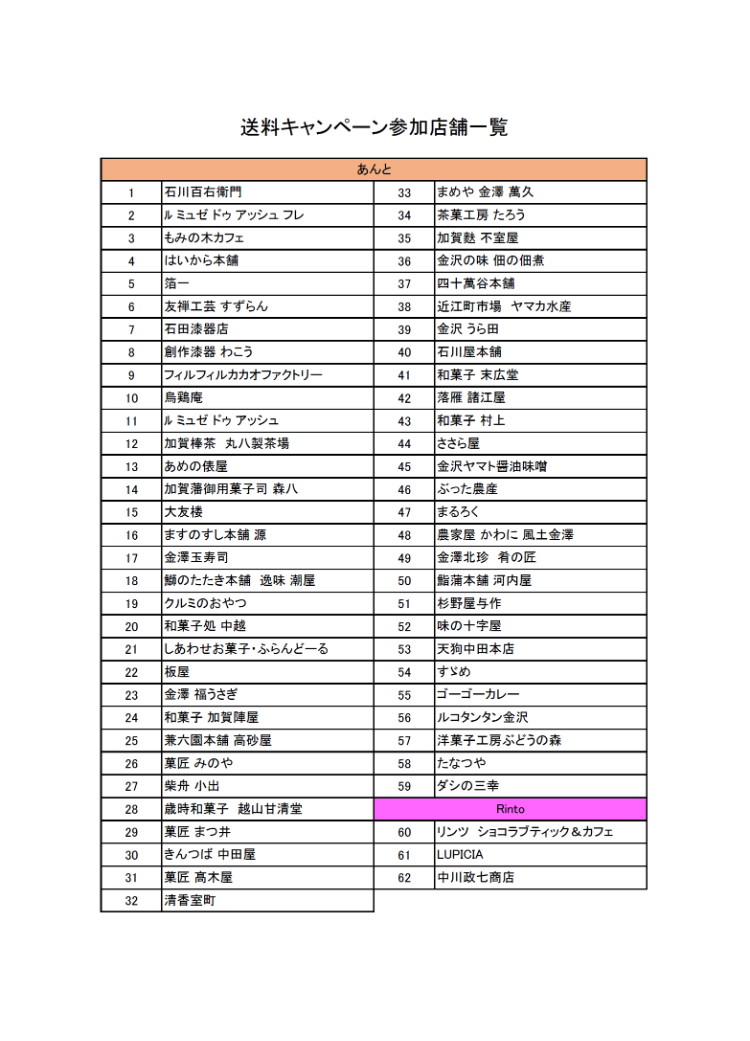 対象店舗:あんと・Rinto 対象店舗