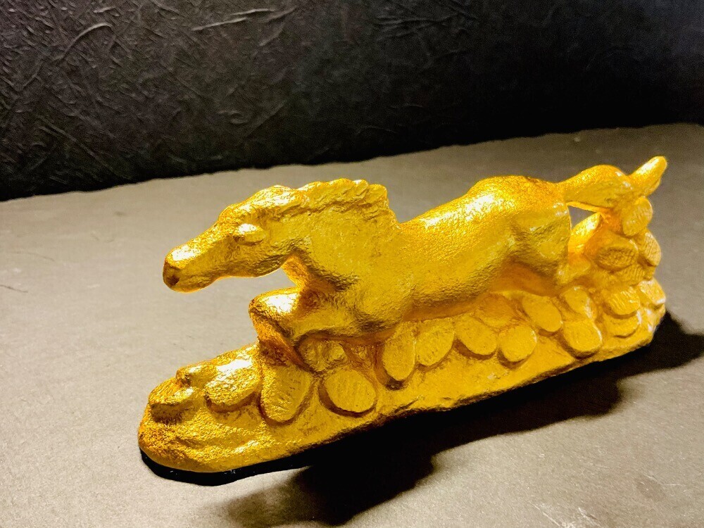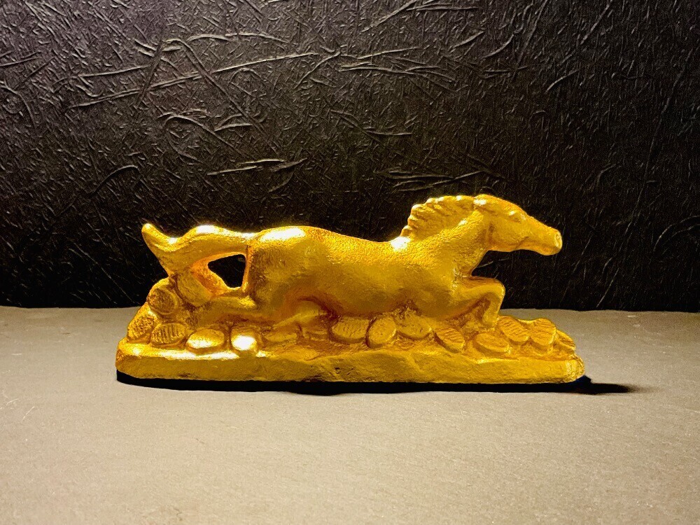 こちらの商品は金銀財宝の中を力強く駆け抜ける馬がデザインされた文鎮。
