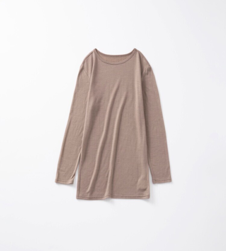 やさしく肌になじむ、あったかインナー薄手で軽く、あたたかい、ウール100%のインナーです。やさしくフィットしてしめつけ感がない着心地にこだわりつつ、肌になじみ洋服に響きにくいシルエットに仕上げました。羊毛の調湿効果によるムレにくさも特徴です。