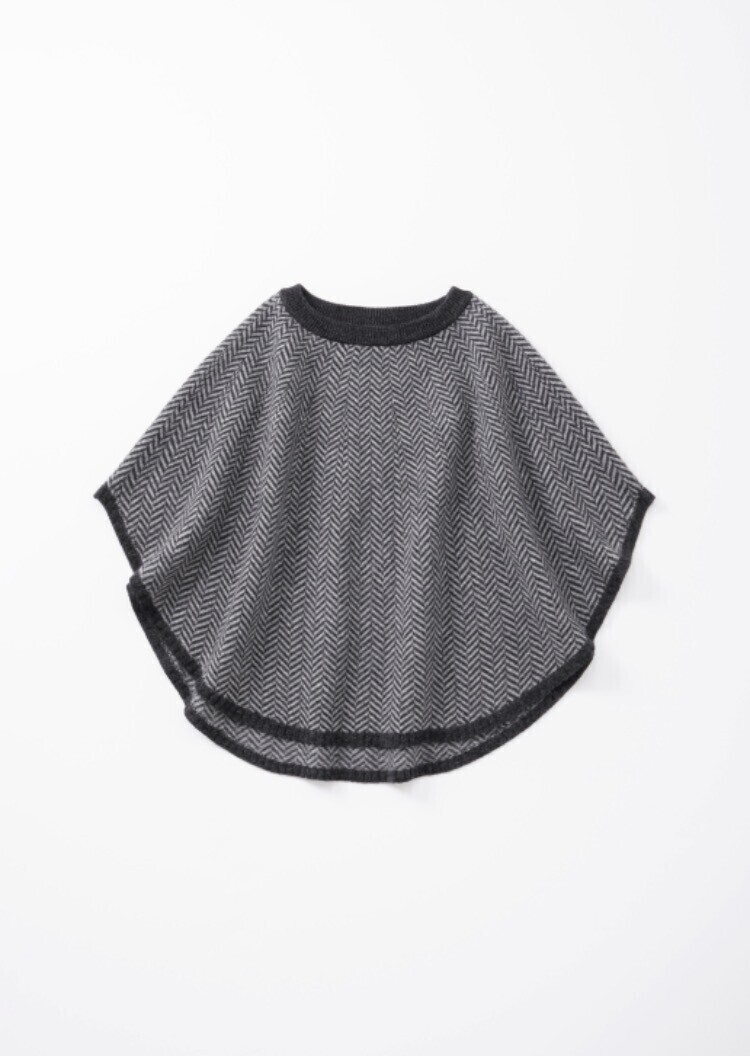 一般的なポンチョやケープは袖や裾が長く、上からアウターを羽織るとだぼついてしまい真冬は着られないことがほとんどでした。そこで、長く重ね着を楽しんでもらうために、袖は着たときに5分丈になるくらいの短めに、裾も下に重ねたシャツやブラウスの裾がのぞくくらいの長さにデザイン。秋はシャツにポンチョ、真冬はタートルニットにポンチョを重ね、さらにコートを羽織って…と季節に合わせた着こなしがお楽しみいただけます。