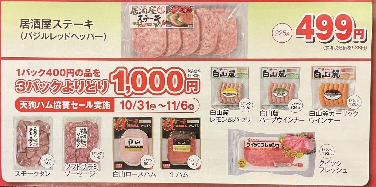 また、対象の1パック(税込)432円の品を3パックよりどりで(税込)1080円という大変お買い得なセールも実施いたします。(3パックよりどりセールは10月31日〜11月6日まで)