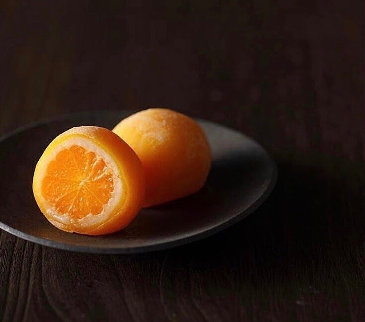 みかん丸ごと1つを白あんと羽二重餅で包んだ大福です✨