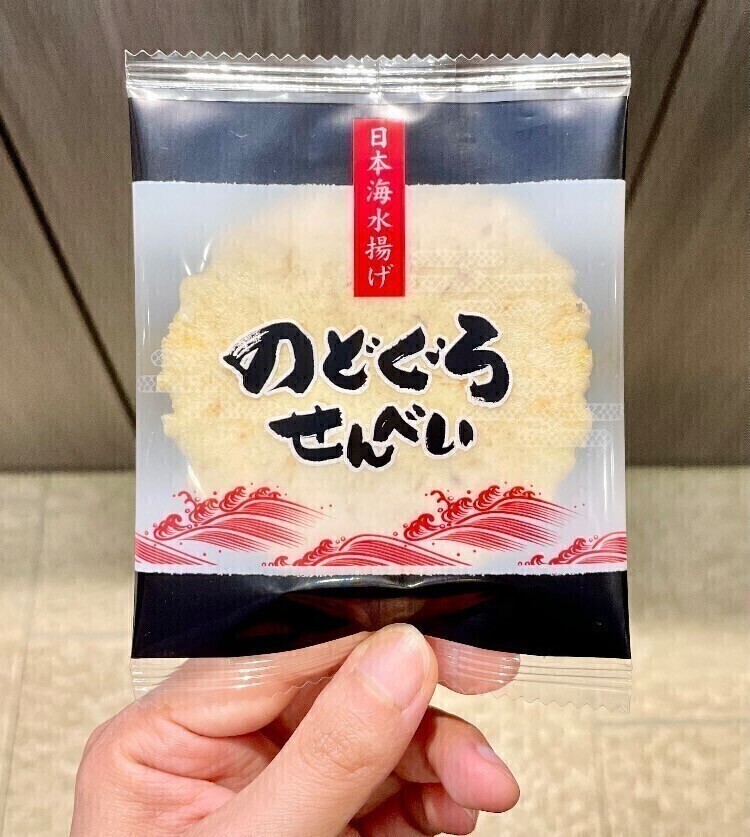 バリバリとした厚みのある食感が癖になるのどぐろせんべいです
