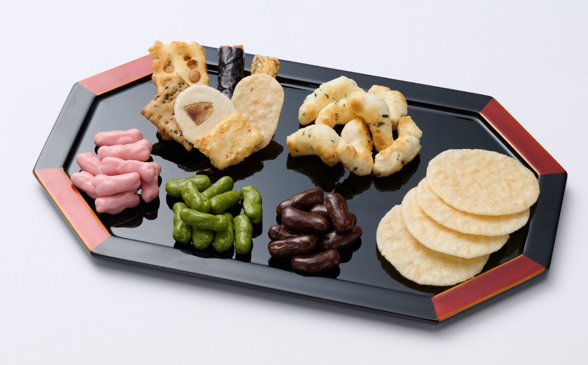 信念をお祝いする一品として、いろどり豊かなあられ・おせんべいのセットです。