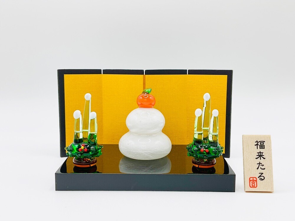 毎年在庫切れになっている大人気商品、ガラス製の「鏡もち」と「門松」