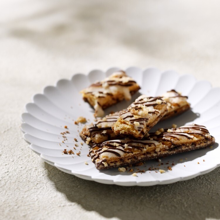 サクッと異なる食感のYUKIZURIにチョコレートとキャラメルを重ねて仕上げた季節のお菓子。