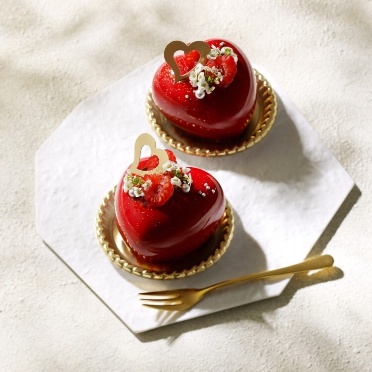 フランボワーズやライチ、ショコラのクッキーを忍ばせたバレンタイン限定のプチガトー。
