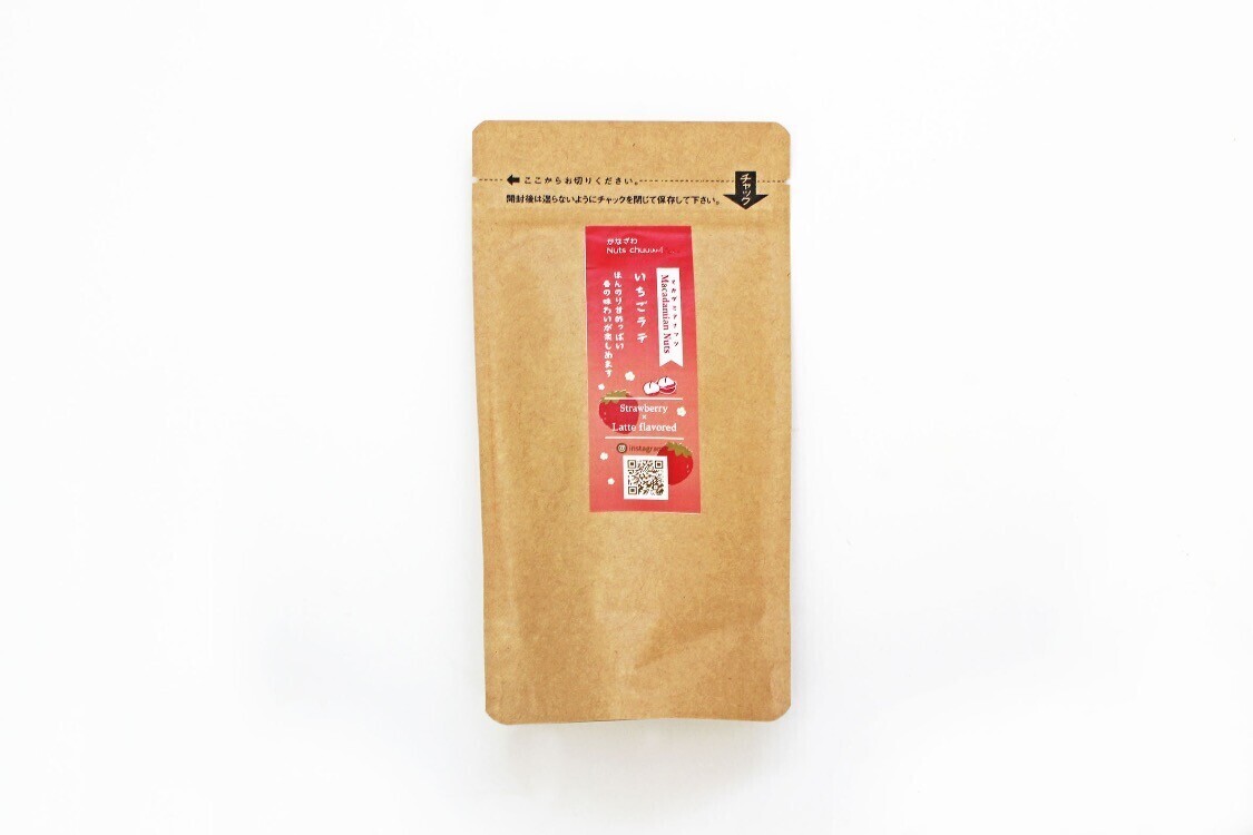 甘酸っぱいいちごの果肉をふんだんに使用した、いちごラテ味。