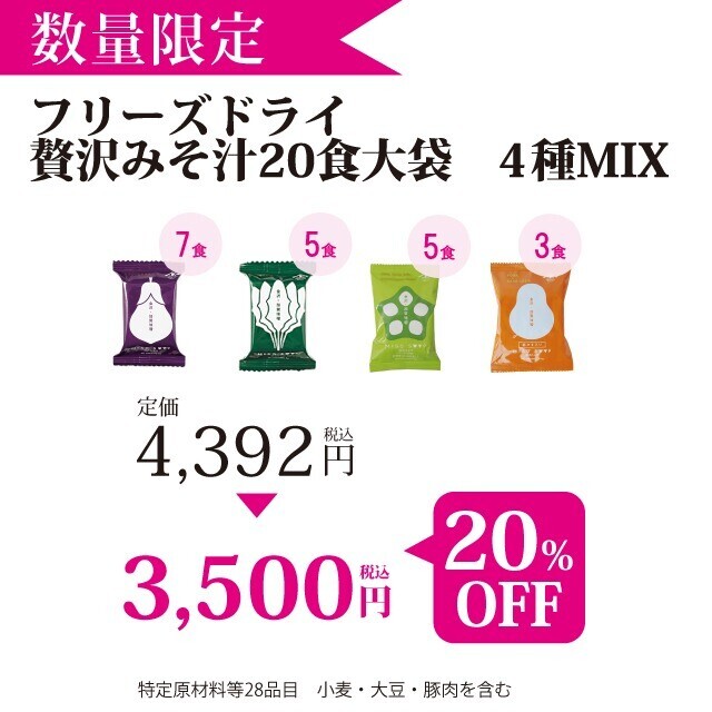 ◎フリーズドライ贅沢みそ汁20食大袋 20%OFF!