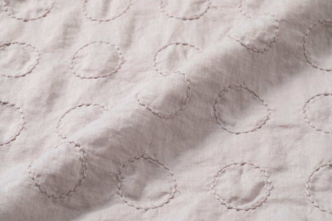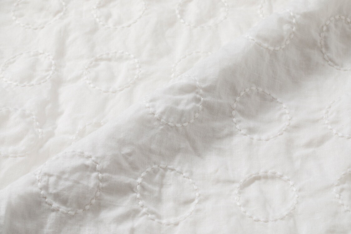 アームホールをたっぷりとり、ショート丈で仕上げました。袖がゆったりしているためドルマンスリーブの上にも羽織りやすく、ショート丈のためスタイルよく見せてくれます。さらりとした綿麻の生地で、素肌に触れても快適な着心地です。
