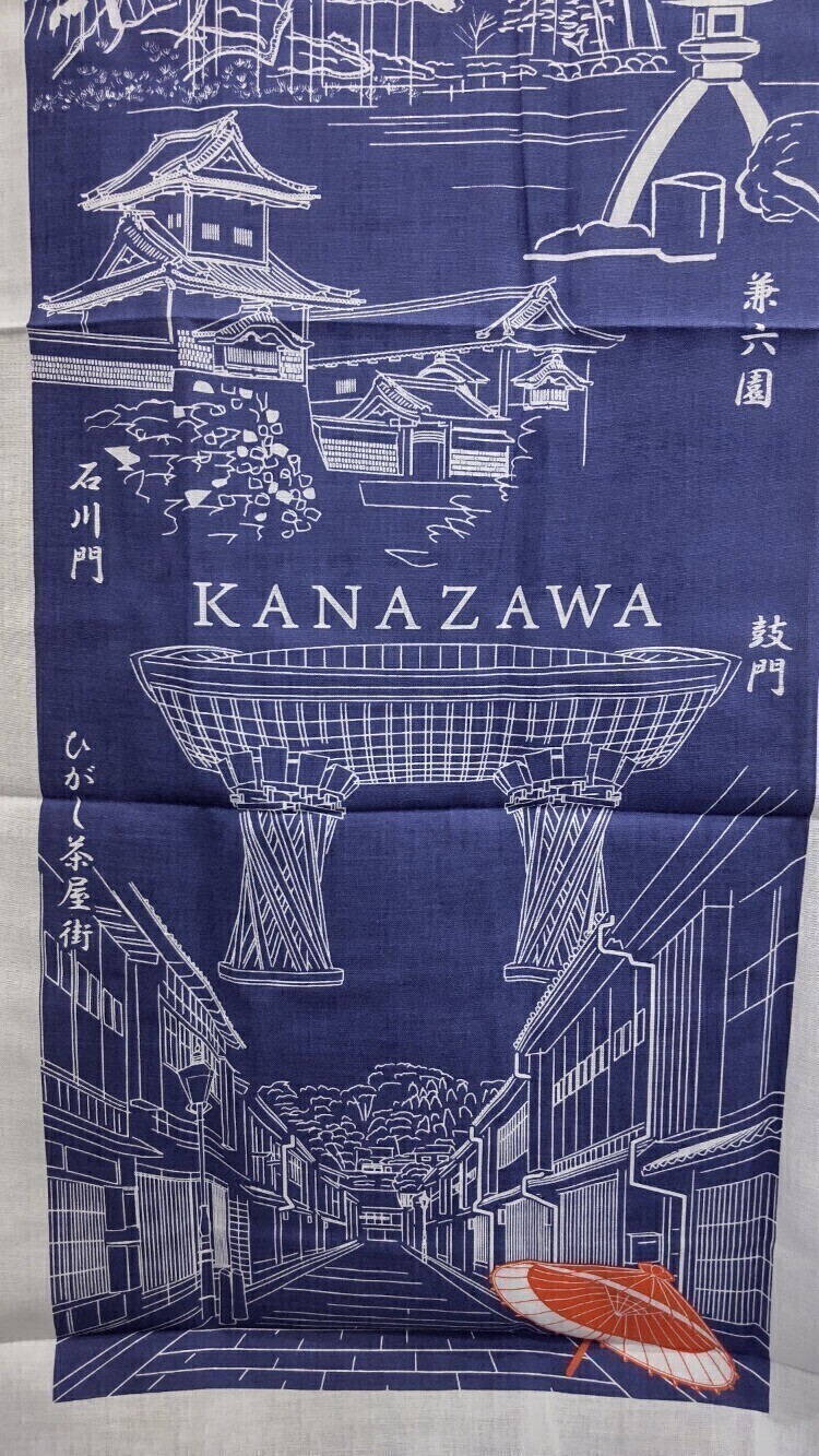 金沢の人気観光地☆兼六園、石川門、長町武家屋敷、ひがし茶屋街、鼓門☆の五柄が入った、金沢の風情あふれる1枚です!
